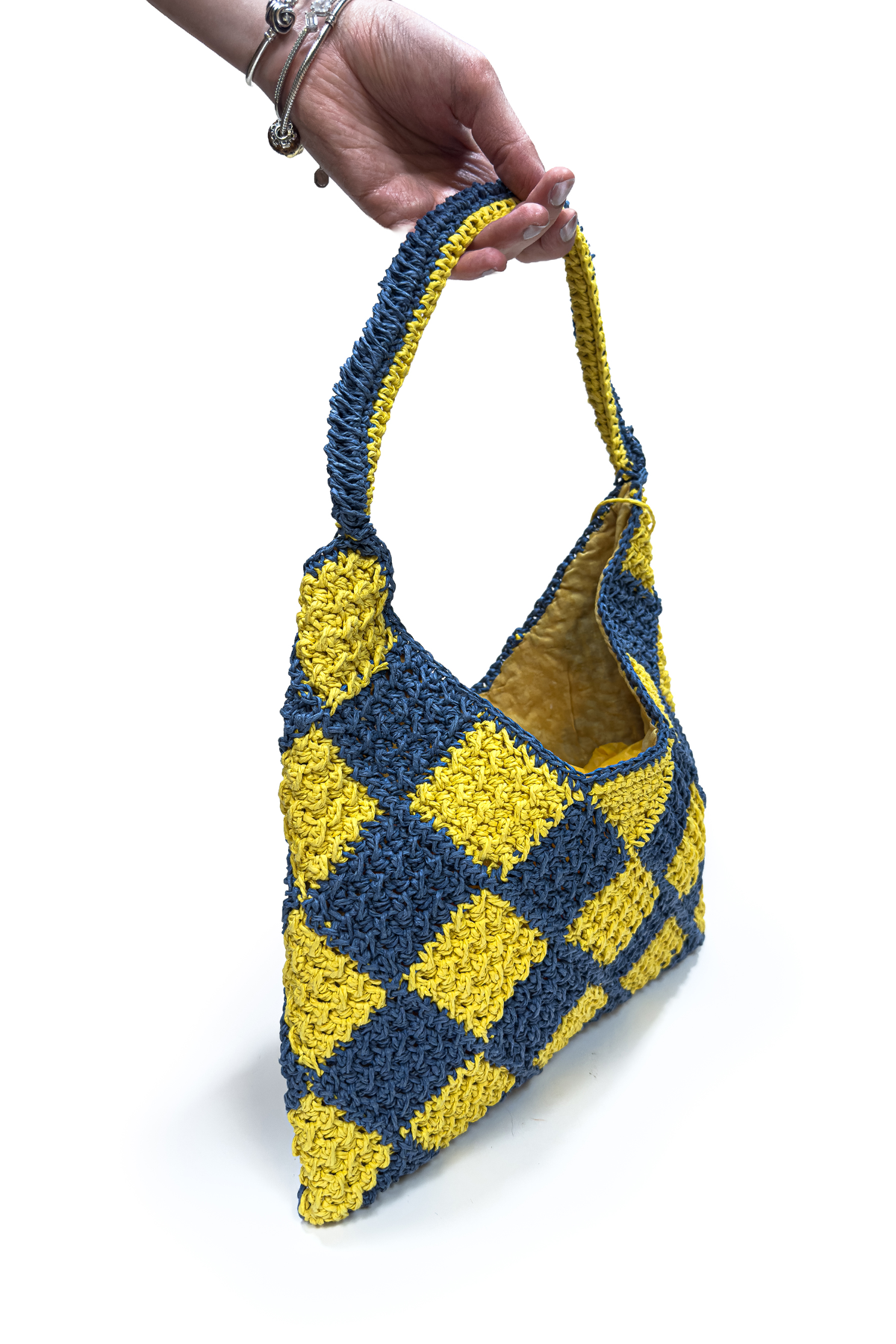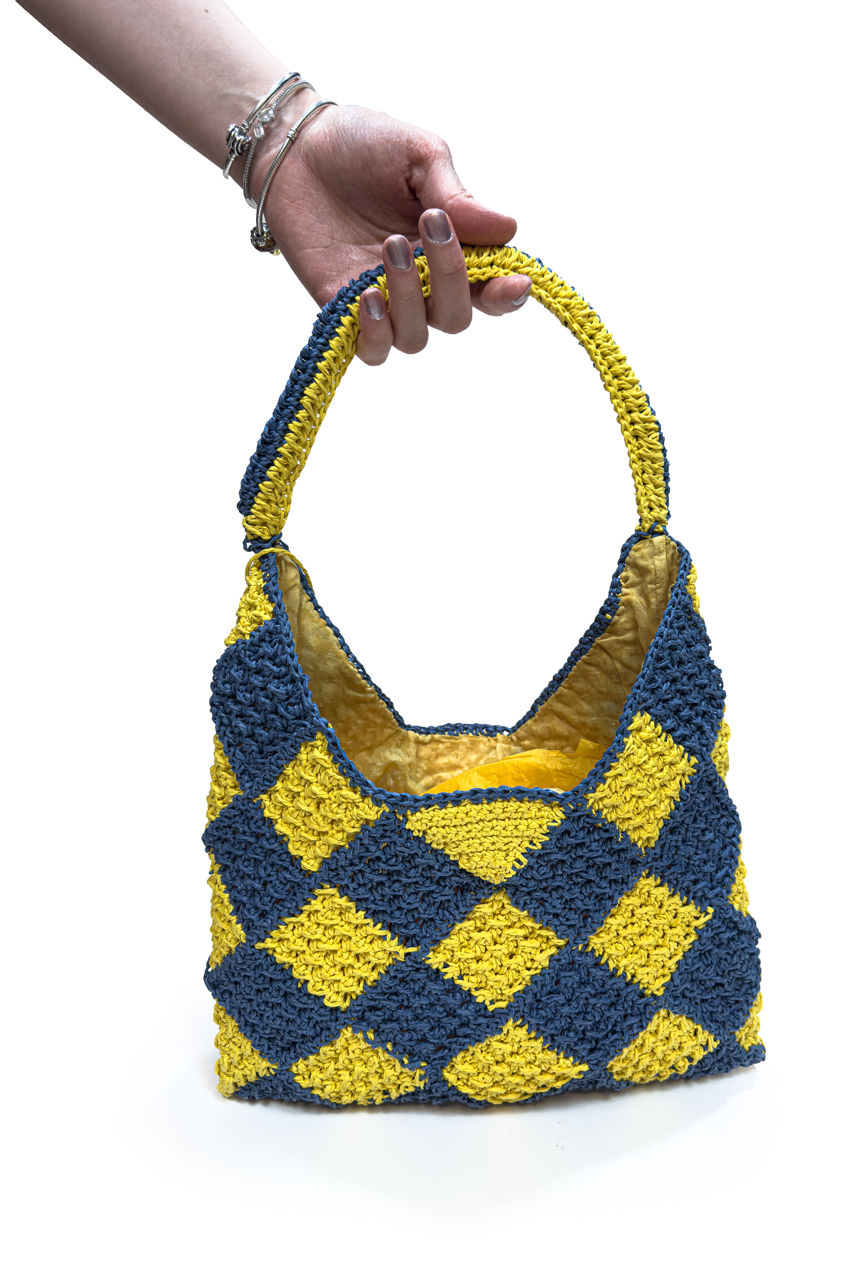 Sarı–mavi kağıt ip kullanılarak hazırlanan Fenerbahçe Bag, enerjik renkleri ve sportif şıklığıyla öne çıkar. Günlük kullanım için ideal olan bu çanta, hafif yapısı ve geniş iç hacmiyle hem rahat hem kullanışlıdır.